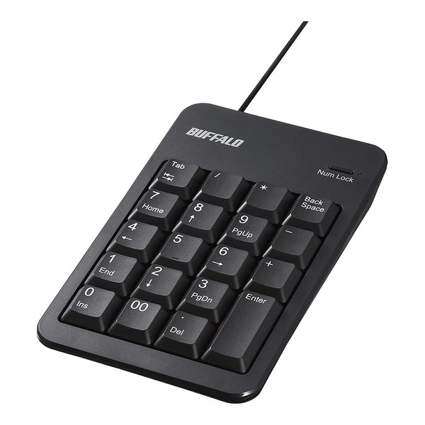 Buffalo BUFFALO BSTK120BK Wired Numeric Keypad with Anti-Bacterial and Tab Key, Black