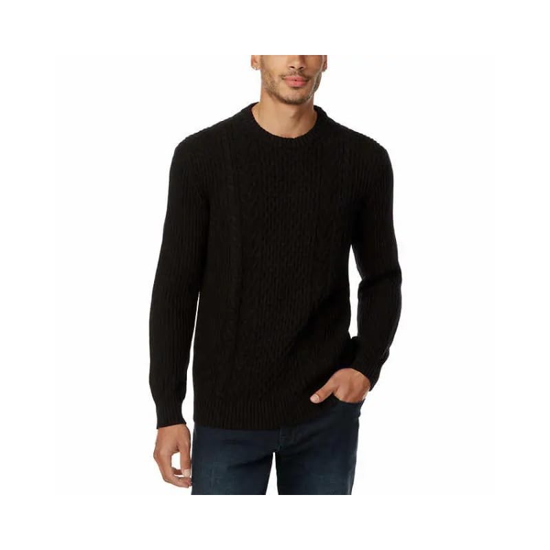 Buffalo Cable Knit Sweater for Men, Black, 100% Cotton, Classic Fit, X-Large