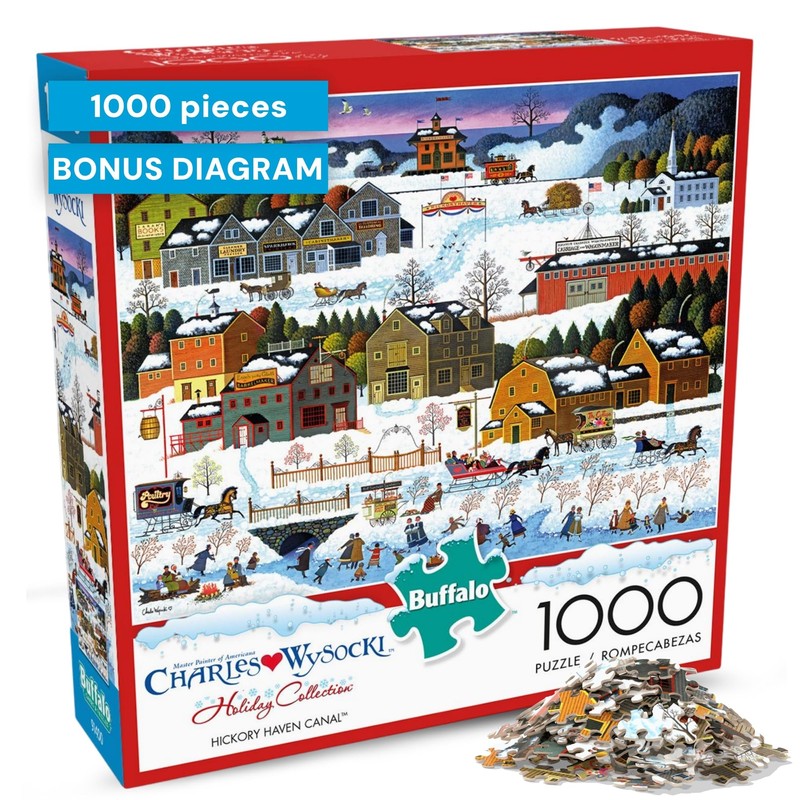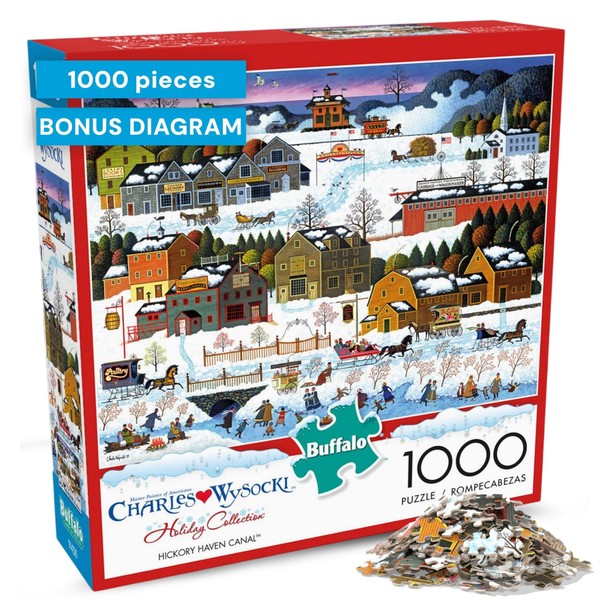Buffalo Games - Hickory Haven Canal - Charles Wysocki - 1000 Piece Christmas Jigsaw Puzzle for Adults - Festive Winter Holiday Puzzles - Precision Cut Pieces and Bonus Poster