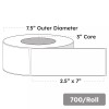 Buffalo Label 2.5" x 7" x 700 Labels, White Gloss BOPP Roll Inkjet Labels, 3" Core, Blank