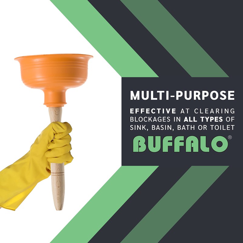 Buffalo - Premium Orange Cup Drain Plunger - Heavy Duty Unblocker - For Kitchen and Bathroom - 15cm