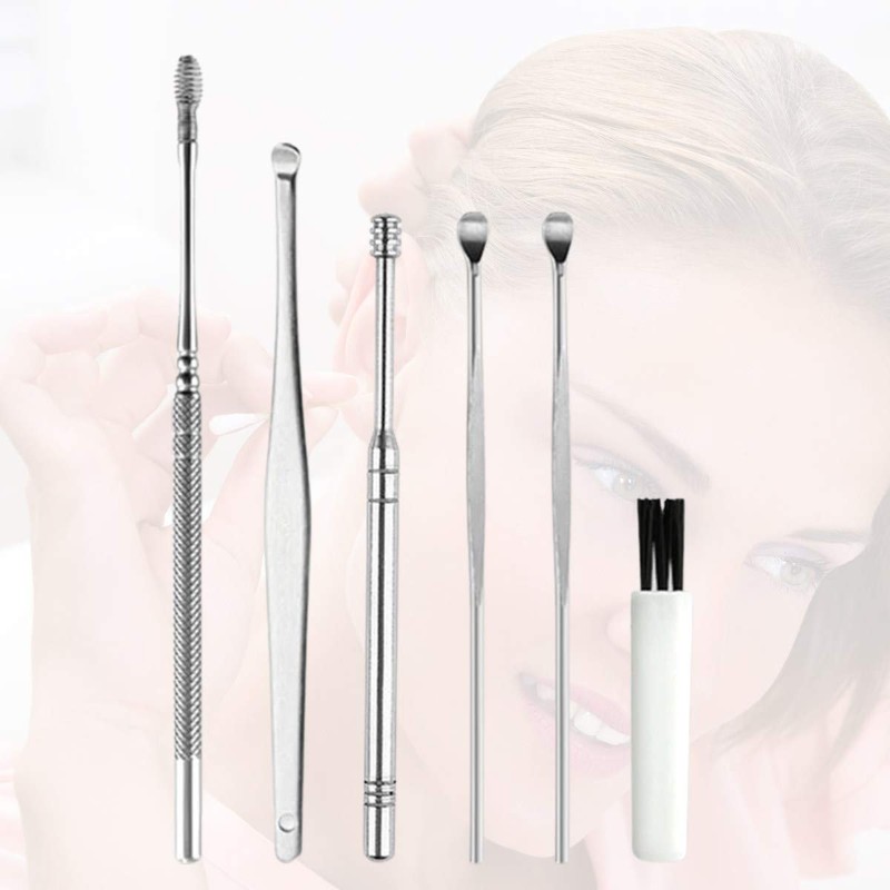 BUFFER® 6 Parça Paslanmaz Çelik Kulak Balmumu Toplayıcı Çıkarıcı Temizleyici Çubuk Seti, Tekrar Kullanılabilir Kulak Bakım Seti
