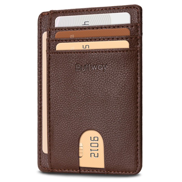 Buffway Buffway Slim Minimalist Front Pocket RFID Blocking Leather Wallets for Men and Women