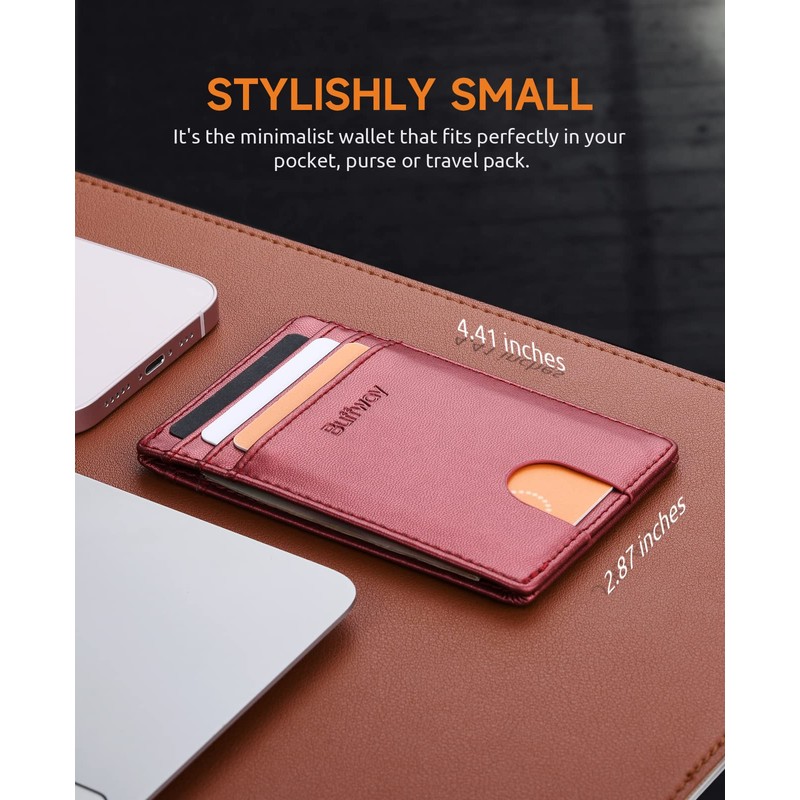 Buffway Mens Slim Wallet, Minimalist Thin Front Pocket Leather Credit Card Holder with RFID Blocking for Work Travel - Boston Rose Gold