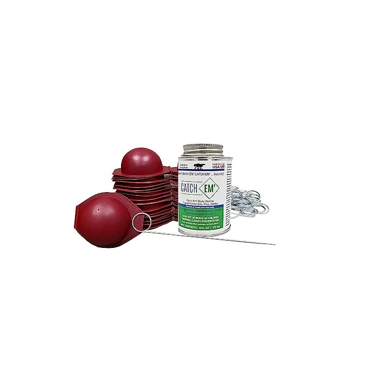 - Kit Comes with;(12) Apple Maggot Traps, (12) wire hangers, and (1) 8-oz can of Catch 'EM brush-on sticky coating with built-in applicator brushes.