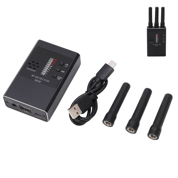 1、Wide in Range: The detector can effectively filter the clutter signal, accurately find a stable signal source for analysis, and adjust the sensitivity to determine the direction and distance of the signal source. 2、Signal Finder: Can detect 2G, 3G, 4G and wireless devices, 1.2G /2.4G & 5.8G wireless cameras, and can accurately locate GPS. Can also be applied to room, bedroom, conference room and so on. 3、High Accuracy: Digitally controlled high sensitivity wireless detection devices are used to detect 300-2700MHz signal, very practical and reliable. 4、Better Alarms: Comes with sound and vibration alarms as well as LED indicator, making the alarming much more clear. 5、Easy Carrying: Light in weight and compact in size, the convenient storage and carrying allows for indoor and outdoor using.