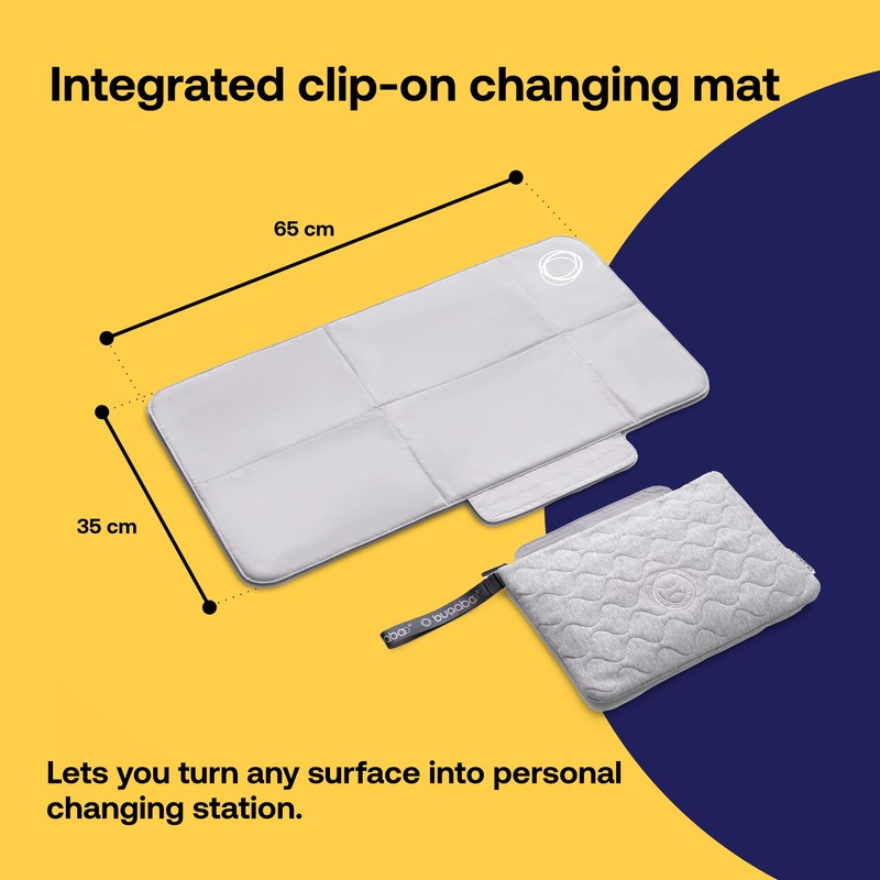 Bugaboo Changing Clutch Including Removable Changing Mat, Waterproof Easily Cleanable Travel Changing Pad for On-The-go Nappy Changing in Light Grey Mélange