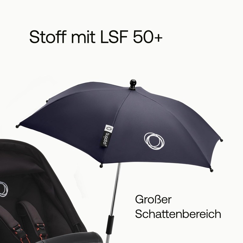 Bugaboo Sonnenschirm+, kompatibel mit allen Bugaboo Modellen, mit UPF 50+ Schutz gegen UV-Strahlen, große Schattenfläche, Verbindung mit einem Klick & leicht verstellbarer Mechanismus, Deep Indigo