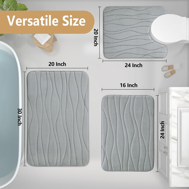 - Multi-Purpose Use: Buganda memory foam bathroom mats have been designed in various sizes and colors, making them suitable for using in the bathroom, kitchen, living room, laundry room, hallway, bedroom, balcony, and more. The elegant waved design adds a touch of style to your home decor. It's an impeccable choice for occasions like Christmas, weddings, Father's Day, Mother's Day, and Valentine's Day. Choose your favorite color to complement your home decor