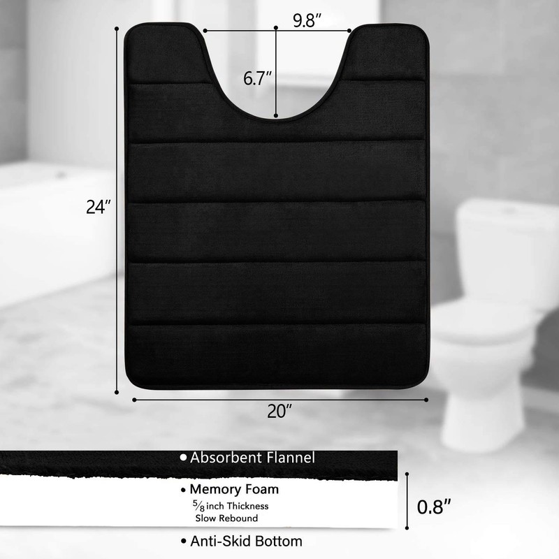 Buganda Memory Foam U-Shaped Contour Toilet Rugs, Non Slip Absorbent Toilet Mat, Thick Soft Washable Bathroom Rugs, Floor Carpet Bath Rugs Mat for Toilet Base (20" x 24", Black)