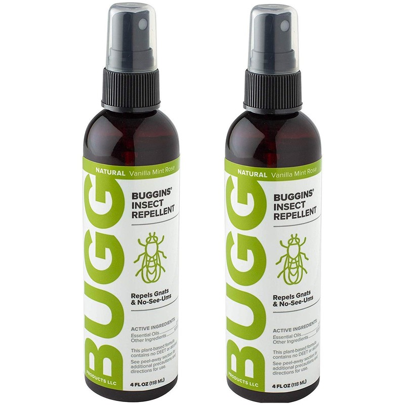 Buggins Natural Insect Repellent, DEET-Free, Repels Gnats & Flies, Plant Based, Vanilla Mint & Rose Scent, 4-oz (2 Pack)