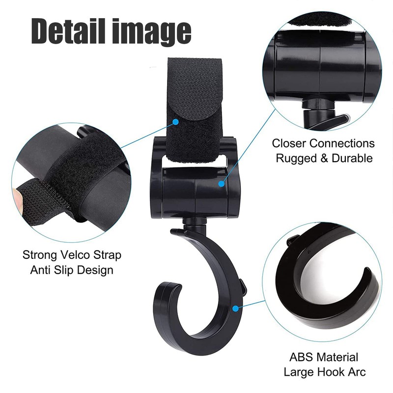 - 【Premium Material】Baby Stroller Hooks Clips are made of sticky super Velcro and high-quality ABS plastic, high gloss, no odor, strong toughness and durable.