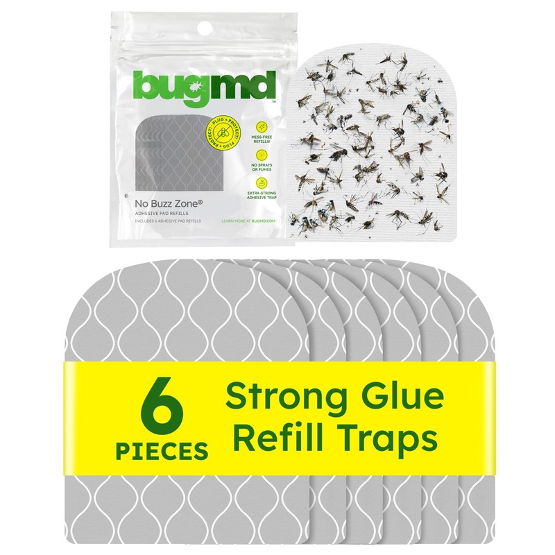 BugMD No Buzz Zone Refiller Pad (6 Refills) - Extra-Strong Adhesive Traps, Indoor Insect Trap Refill, No Harsh Chemicals, Household Friendly, Fly Trap Refill, Flea Trap Refills, Bug Trapper