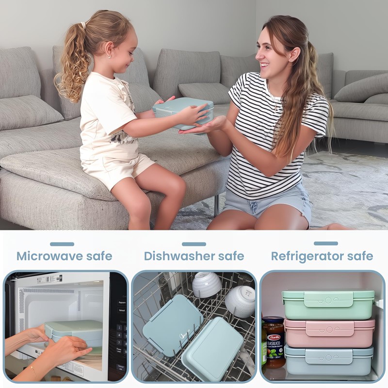 • Leak-proof children's lunch box: each compartment of the children's lunch box is equipped with a 5 mm thick silicone sealing ring to ensure the freshness and cleanliness of the food during transport. The sides are equipped with four independent clips that can be easily opened and closed by a 3 year old child. This classic Bento box is ideal for children aged 3 and up as well as adults.