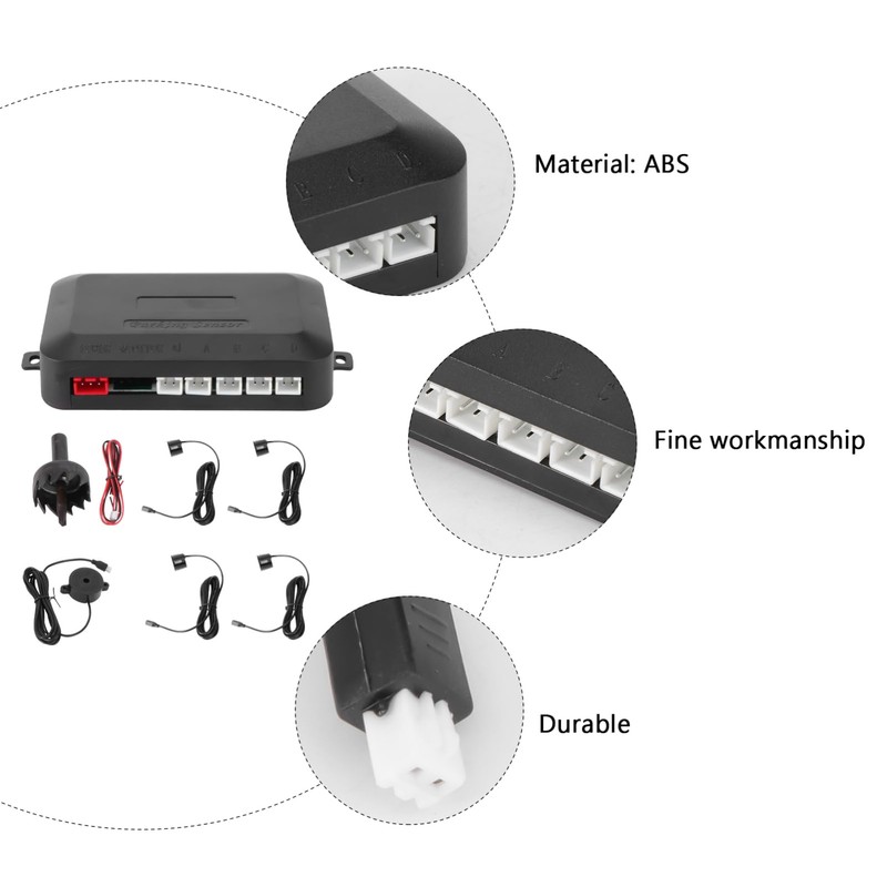 - Car auto backup buzzer alarm:provide increased safety for passengers, pedestrians and family members who happen to be around the moving vehicle,4 sensors car auto reversing alarm