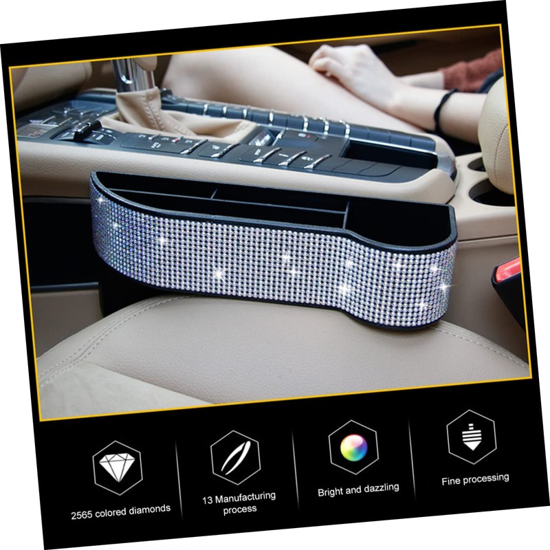 BUGUUYO 1Pc Rhinestone Studded Car Seat Gap Storage Box Multifunctional Organ...