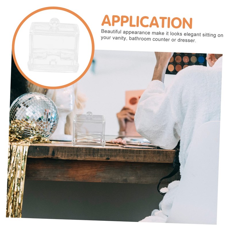 Cotton Swab Organizer This item is a storage holder, which is big enough to put down many cotton pads or cotton swab.Desktop Storage Case The container is equipped with a lid, easy to access and refill.Cotton Swab Storage Holder This cotton swabs organizer would go any dressing table