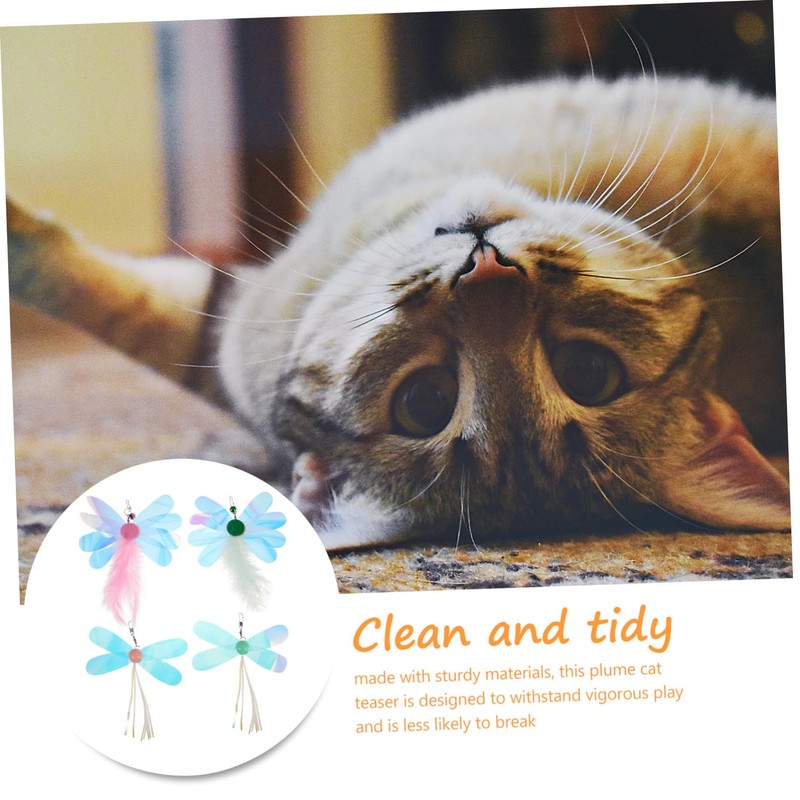 BUGUUYO 4pcs Interactive Cat Teaser Refills Swaying Plume Heads for Indoor Cats Durable Butterfly Dragonfly Attachments for Endless Fun and Exercise