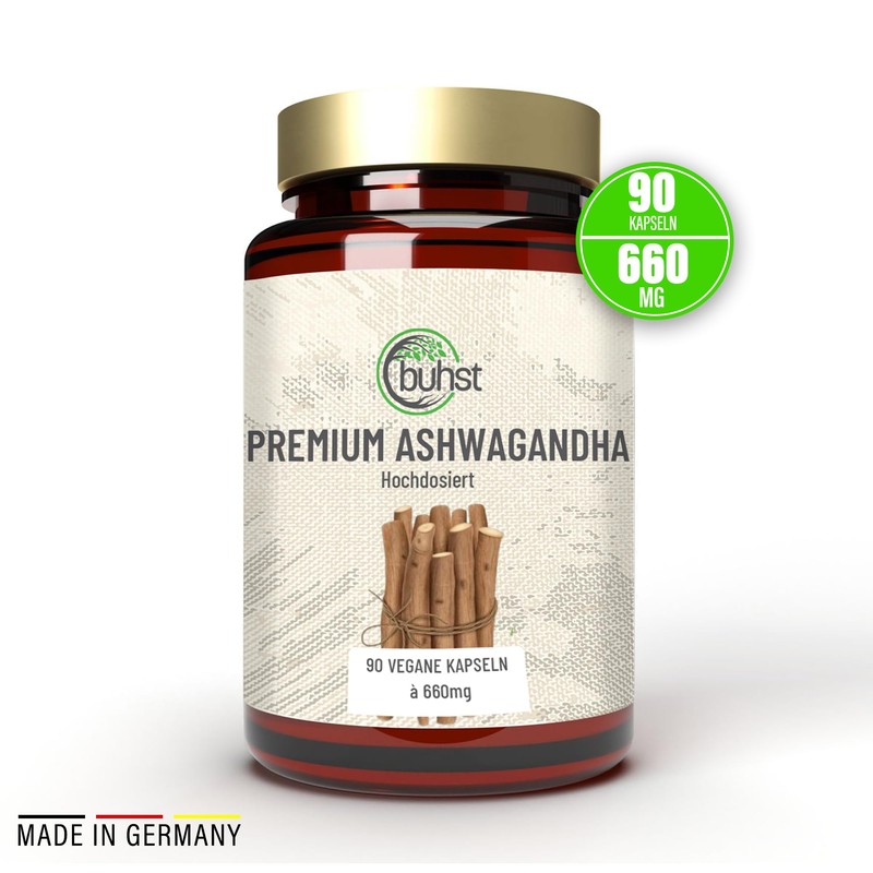 BUHST® Ashwagandha Capsules High Dose - 660 mg/Capsule Full Spectrum Ashwaganda Premium Root Powder from Indian Sleep Berry [No Leaf Extract] - Produced and Hand Filled in Germany - No Additives