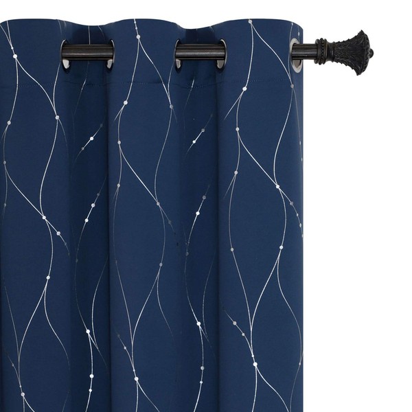 - ELEGANT DESIGN: BUHUA charming designed silver wave line and dots printed room darkening curtains are perfect for bedroom, living room, kids room,nursery, kitchen and dining room.