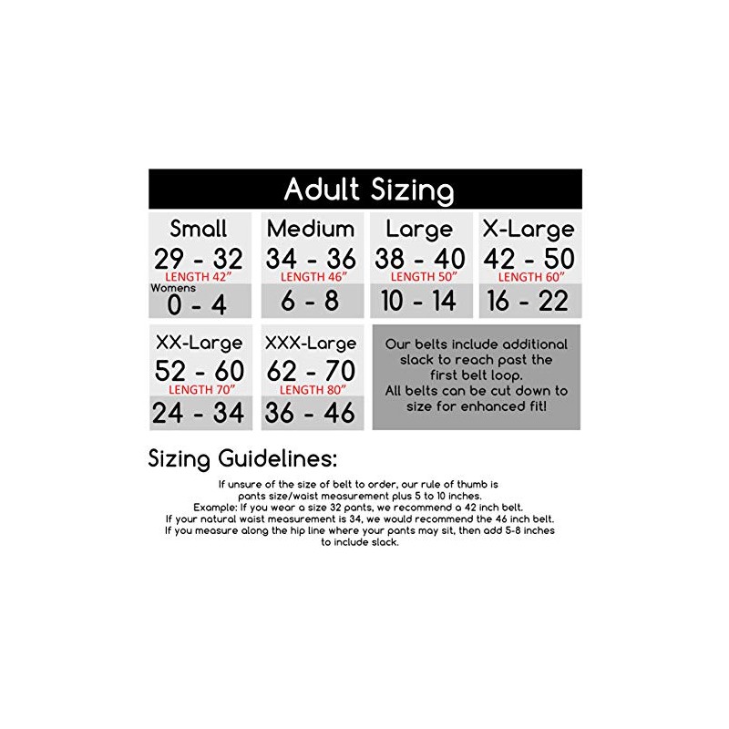 - Size chart can be found in the listing images. Total belt length is in "Red Font"
