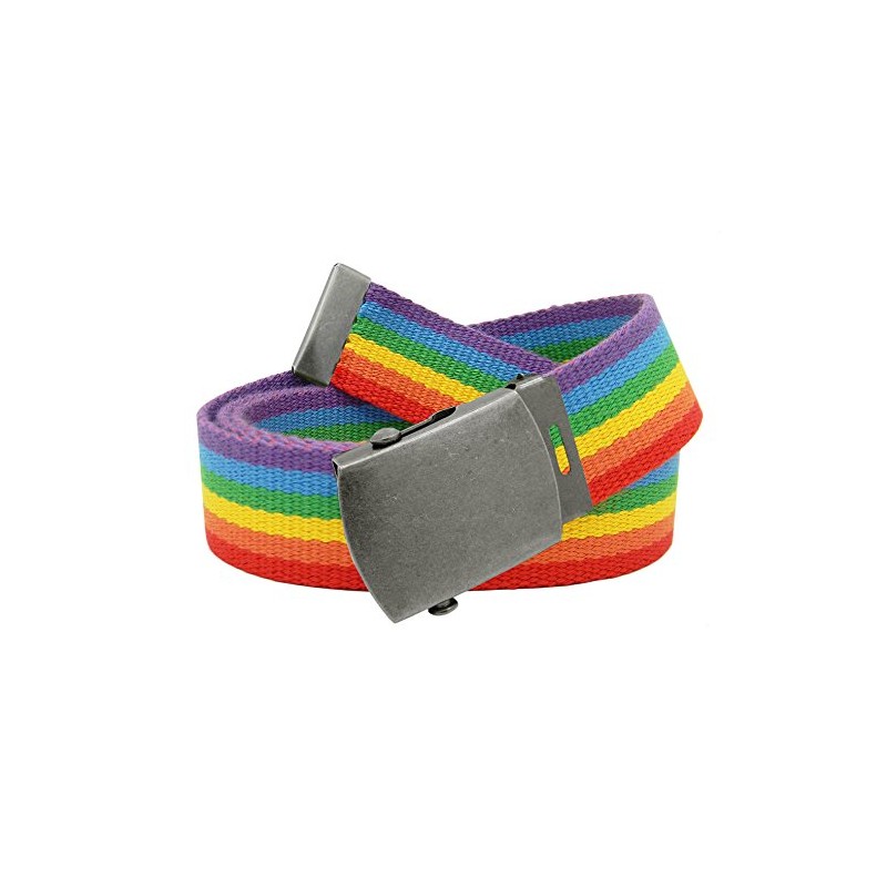 Build A Belt Classic Antique Silver 1.25" Wide Slider Buckle with Canvas Web Belt (Womens Medium Rainbow)