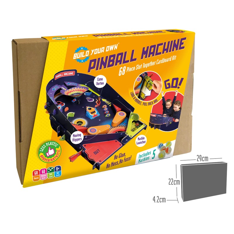 Build Your Own Working Pinball Machine | Arcade Classic Retro Toy | 68 Pieces inc. 5 Marbles | Fun Gift for Kids, Girls & Boys & Families Age 8+ | Eco Friendly Cardboard Slot Together Kit
