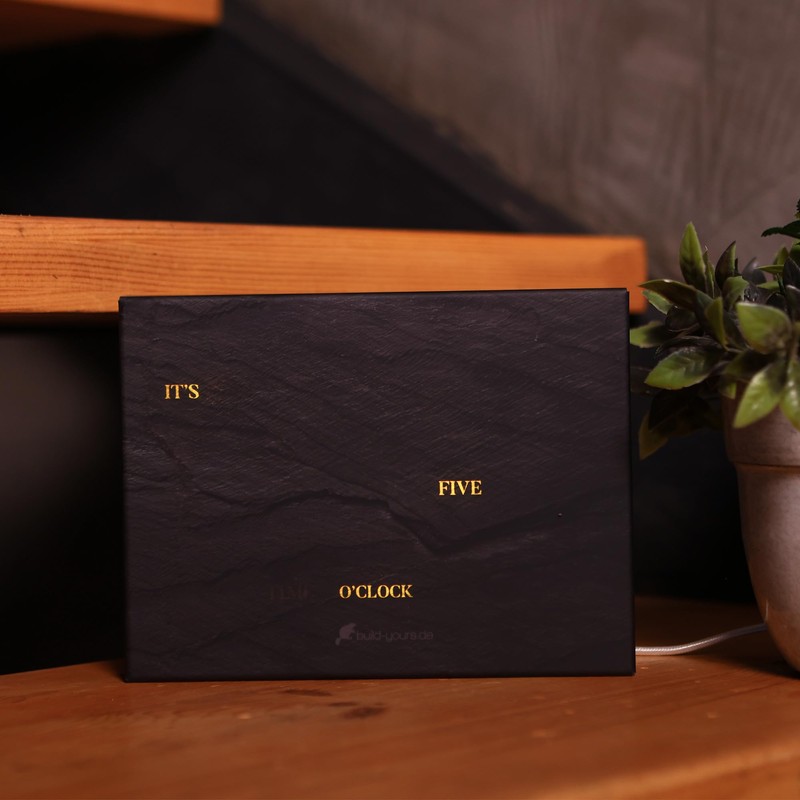 - Zeigt die Uhrzeit auf Deutsch an: Verfügt über eine buchstabenbasierte Zeitanzeige in deutscher Sprache, die Funktionalität mit einer markanten, modernen Ästhetik verbindet und in jeder Inneneinrichtung hervorsticht.