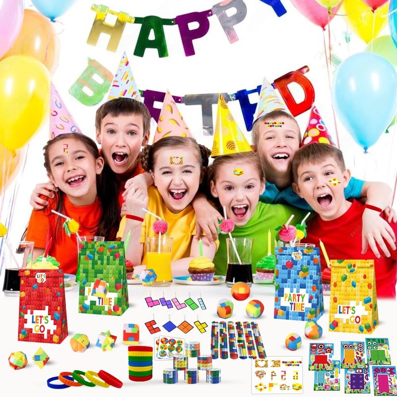 - 【Exquisite Building Block Theme】 surprise your guests with beautifully designed Building Block theme party favors; The array of charming Building Block designs across the bracelets, tattoo stickers adds an attractive aesthetic, turning your party into a Building Block atmosphere;Ignite they imagination and creativity with these Building Block designs.