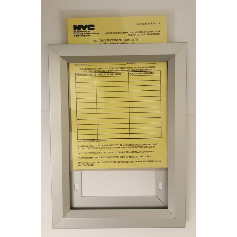 - Fits 5.5” x 8.5” and 6” x 9” Documents:Compatible with standard certificate sizes used for elevator inspections, permits, and HPD compliance notices.