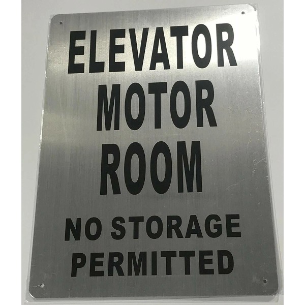 Buildingsigns.com Elevator Motor Room Sign(Brushed Aluminium,10x1