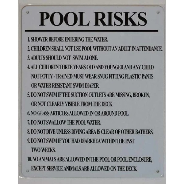 BUILDINGSINGS.COM Pool Risks Sign (White, Rust Free Aluminum 10x12)-REF24-1027
