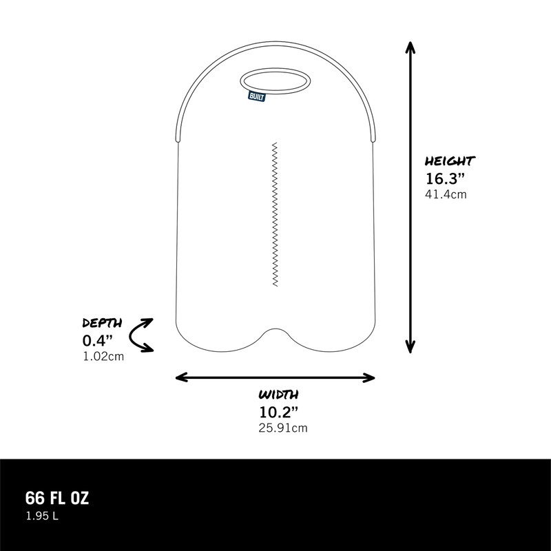 This neoprene wine tote insulates two bottles, keeping your favorite beverage at the perfect temperature. Neoprene is tough and protects against, spills, splashes, bumps, and drops, making it perfect for safeguarding the things you love. This light-weight tote stores flat when not in use. Soft-grip handles make it easy to carry and a Velcro closures keep bottles securely inside. Wherever this product goes, the good times follow. Perfect for toting libations to parties, it also makes a fantastic gift for the host. That is, if you can resist keeping it for yourself. Red or white, sparkling or still, Built's original totes are the carrying method of choice whether you're an oenophile or teetotaler. Machine wash cold, hang dry.