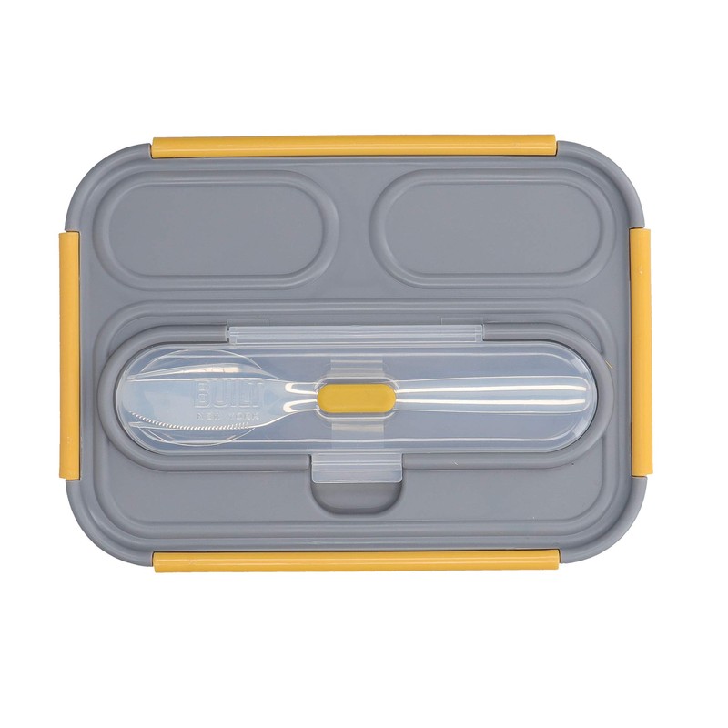 BUILT Bento Lunch Box with Cutlery, 23.5 x 17 x 6.5 cm, Grey/Yellow