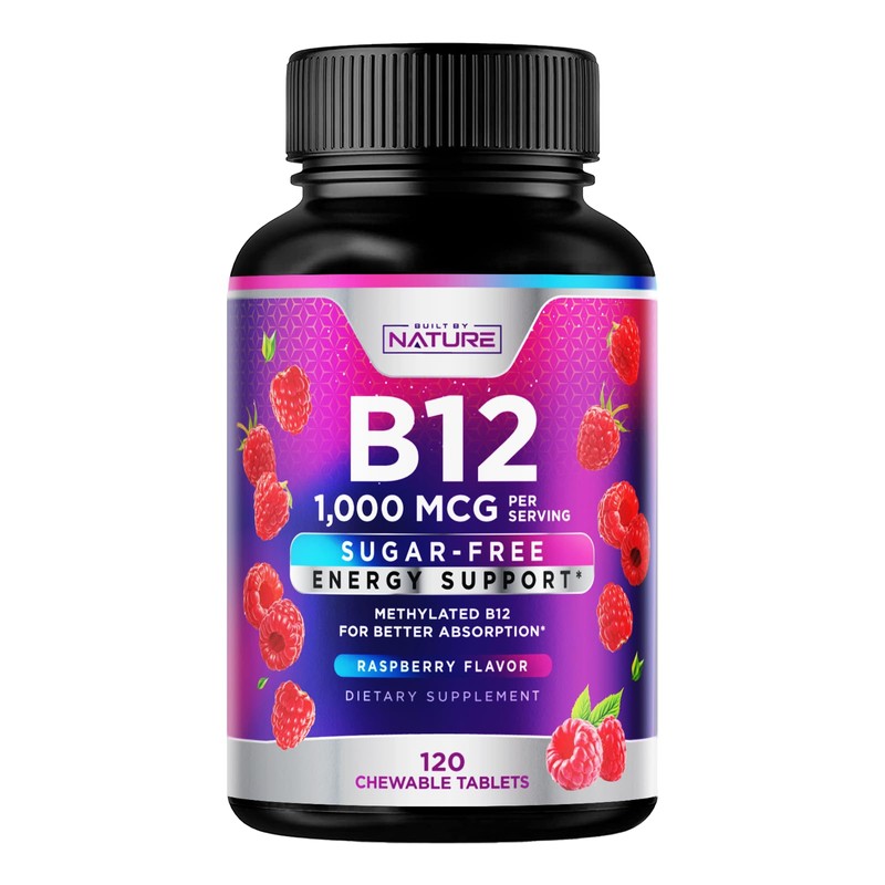 Built by Nature Built by Nature Vitamin B12 1000 mcg Methylcobalamin C Fast Dissolve Sublingual Tablets for Energy & Nervous System Support - Berry Flavor C 120 Chewable Tablets (4 Month Supply)