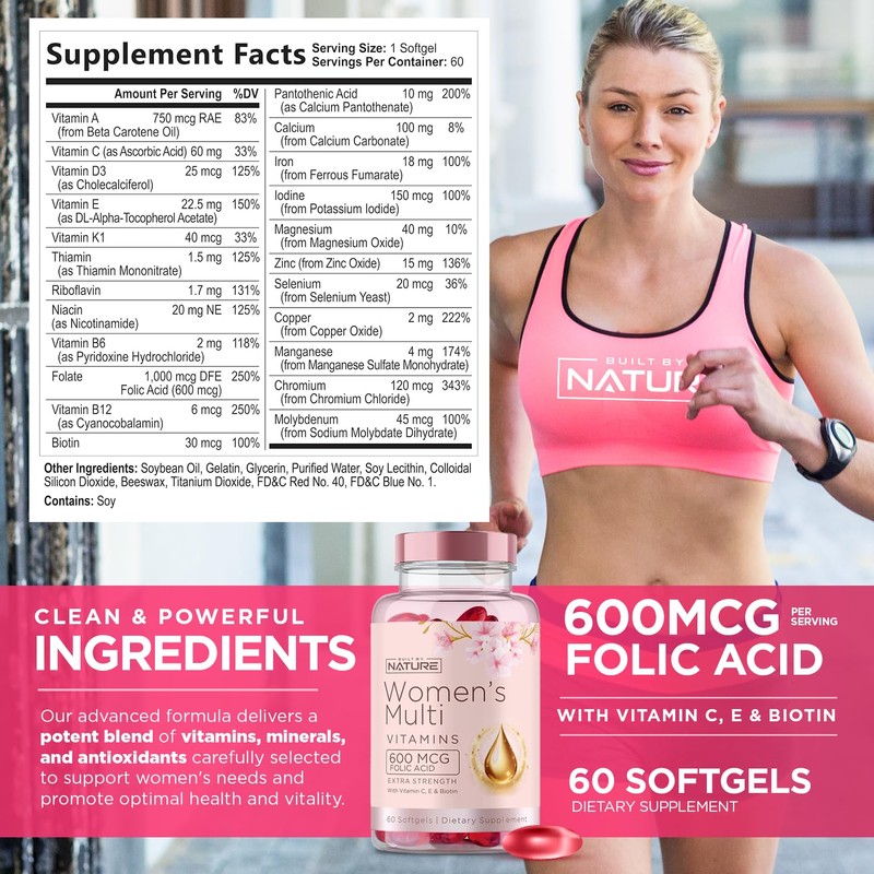 Built by Nature Vitamins for Women – Women's Complete Daily Multivitamin Supplement with A, B, C, D, E, Iron, Calcium, Magnesium and Multi Minerals – Wellness & Immune Health Support - 60 Softgels