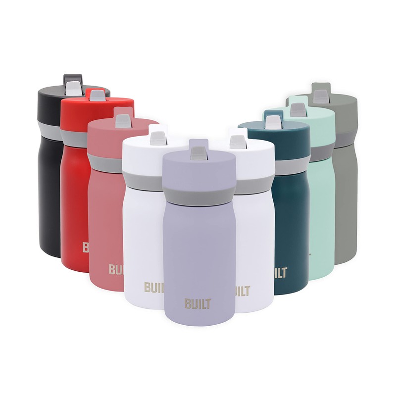 BUILT Cascade Double Wall Vacuum Insulated Stainless Steel Wide Mouth Water Bottle with Comfort Grip and Straw Lid and Carry Handle, 12 Ounces