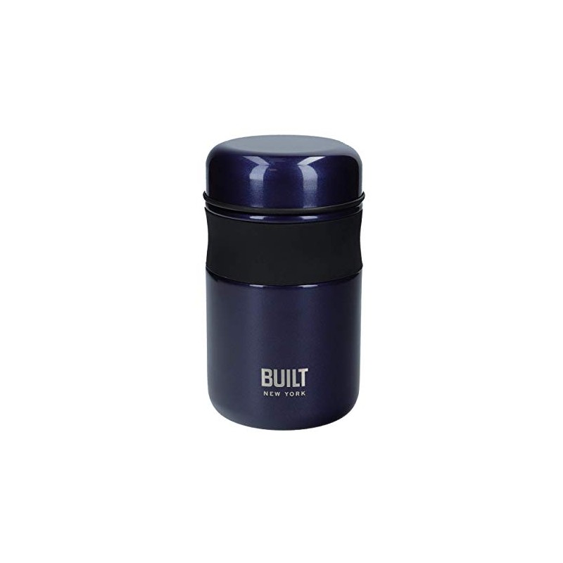 BUILT Double Wall Vacuum Insulated Food Flask for Hot and Cold Foods, Stainless Steel, Navy, 490 ml