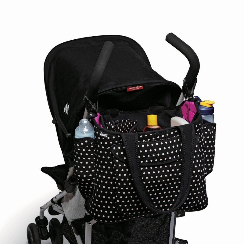 Anyone that has a little one knows what a chore it is to have everything you need with you at all times. Created out of necessity by the makers of the iconic neoprene lunch bags and totes, this Built go go diaper tote, in baby dot no. 9 is a diaper bag plus. There are numerous interior pockets to keep it all organized, two exterior pockets for water bottles, baby bottles, Sippy cups, whatever you need. Also comes with a removable and adjustable strap with padding to keep you comfortable. The perfect sized tote to carry diapers, wipes, and other baby needs. Features a strap that opens so that you can attach it to the stroller or another tote bag. Made of stain resistant neoprene (the wetsuit material) and measures 9 8/10 wide by 6 1/10" high by 1 6/10" deep. Built is a new York based company that designs fashionable and functional bags, totes, and cases for life on the go. Drawing inspiration from the city that never sleeps, Built applies color and pattern to laptop sleeves, ipad cases, camera bags, lunch totes, and other accessories that protect the stuff you love wherever you go. Built – love your stuff.