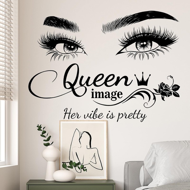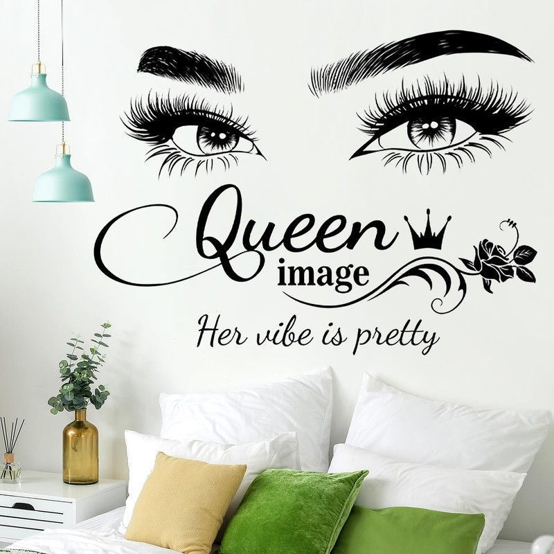 Buiory Eyelash Wall Decals Her Vibe is Pretty Mural Decor Removable Inspirational Quotes Wall Stickers Vinyl Queen Eye Quotes Wall Art for Women Girls Dorm Bedroom Living Room Office Background