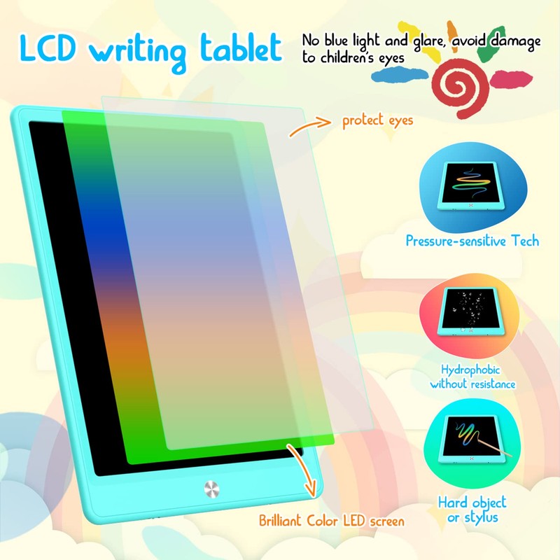 - Sin luz azul y protege los ojos de los niños. La tableta de escritura LCD utiliza u pantalla de material de protección ocular de 12.5 pulgadas. La pantalla de la tabla de dibujo espletente segura a través de la prueba: sin reflejos, sin radiación, sin tinta, sin polvo, visión similar al papel, que puede proteger la vi de tus hijos y mantenerlos alejados de pigmentos químicos y polvo que emularán su piel y pulmones. Las líneas son coloridas, claras y llativas.