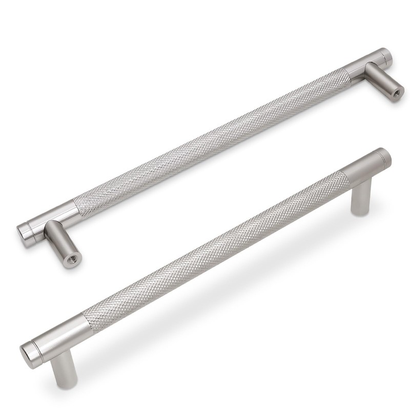 BUKOBYHE 10 Pack 7.5Inch Brushed Satin Nickel Kitchen Cabinet Handles Knurled Cabinet Pulls Drawer Pulls Kitchen Hardware