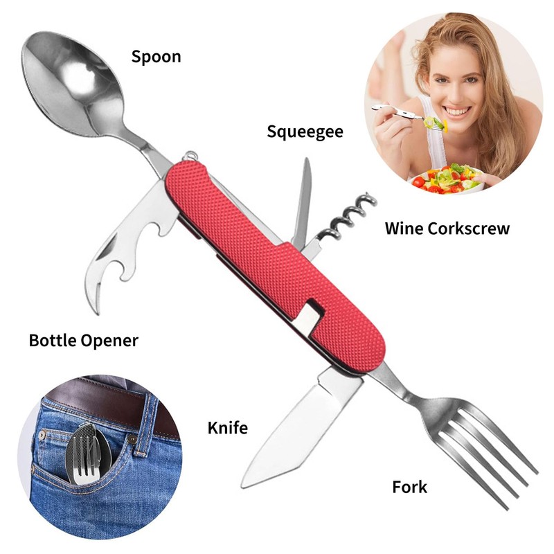 - MEHRERE FUNKTIONEN: Dieses 6-in-1-Camping-Besteckset wird mit einer abnehmbaren Gabel, einem Löffel, einem Messer, einem Flaschenöffner und einem Dosenöffner geliefert. Eine Vielzahl von Funktionen, um Ihren unterschiedlichen Anforderungen gerecht zu werden.