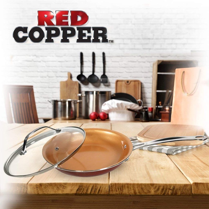 - Both pose as possible hazards. Get the perfect fitting lid for your Red Copper 12-inch pan. The tempered glass lid measures 12-inches round, fitting the 12-inch pan snuggly.