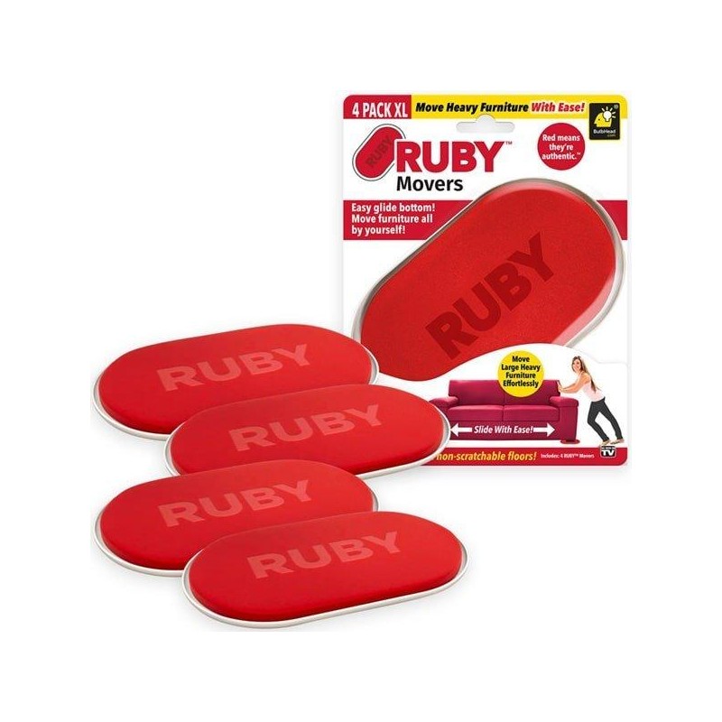 RUBY Movers make it easy to move anything so you can clean thoroughly and find lost items. The secret is the grip-lock top that holds furniture solidly on the RUBY Movers and the nano-glide bottom that easily slides across the floor.