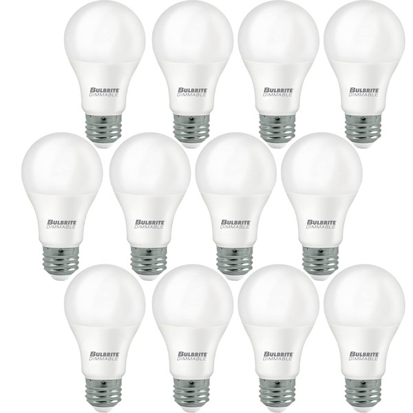 Bulbrite Pack of 12 Item 774235 A19 LED Bulb, 9W, 60W Equiv., Dimmable, 3000K, E26 Base, 120V Soft White Light, A-Type Bulb