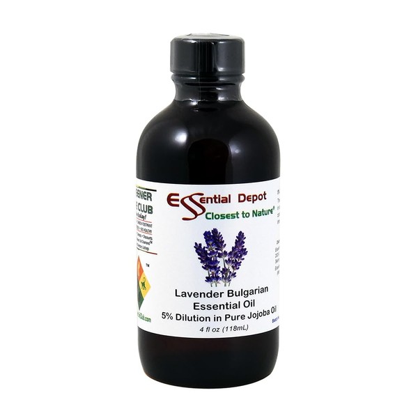 - Bulgarian Lavender Essential Oil 5% Dilution in Jojoba - 4 fl oz - essential oil protective amber glass bottle with a safety sealed phenolic screw cap