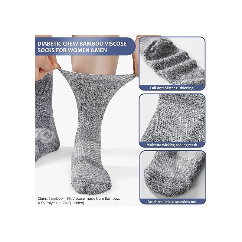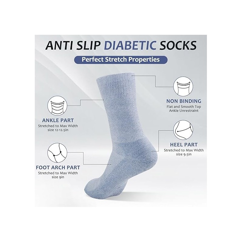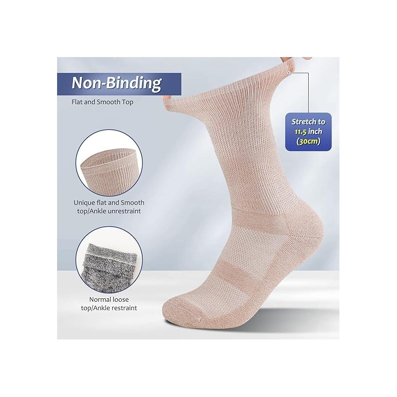 - Unique design for ankle unrestraint--Diabetic Crew Socks for Womens&Mens non binding diabetic socks with unique loose top around your ankles,which is different from the diabetic loose top on market, we use a unique computer programmed design that perfectly solved the problem of the binding the your ankle.the normal diabetic socks' loose top only stretches to 10 inch(25cm), but we can stretch to 11.5 inch(30cm). your ankles will not feel any constraint, unrestricted blood flow