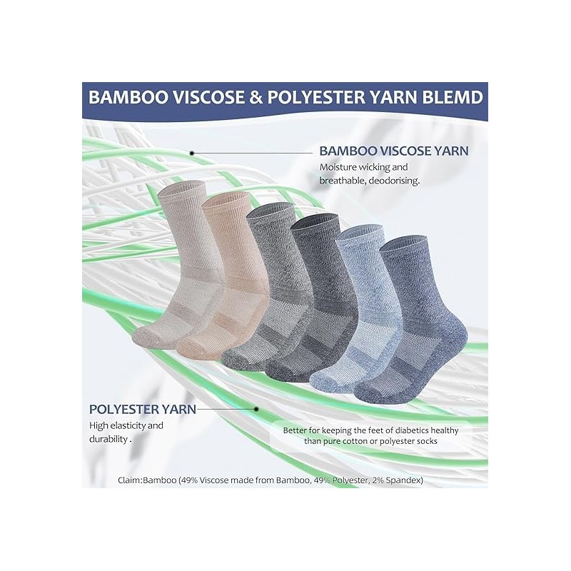- Healthier material--Women Diabetic socks are made of high-quality viscose fiber (49% Viscose,49% Polyester, 2% Spandex) which makes the socks not only have the advantages of moisture wicking and breathable, but also have good elasticity and durability. This blend of yarns is therefore better for keeping the feet of diabetics healthy than pure cotton or polyester socks