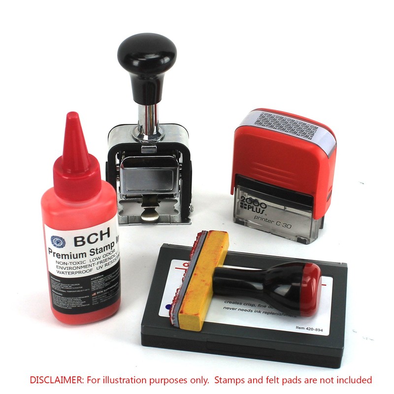 Bulk 2X Red Stamp Ink Refill by BCH - Premium Grade -2.5 oz (75 ml) Ink Per Bottle